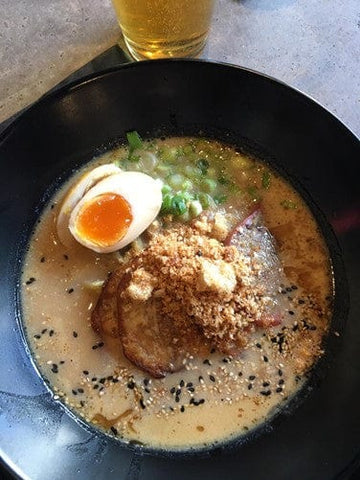 Een kom ramen van Cocktail Beer Ramen + Bun