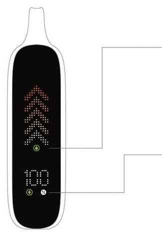 The LED display on your RELX device provides you with information about the remaining battery and E-liquid level. Please see below for details: